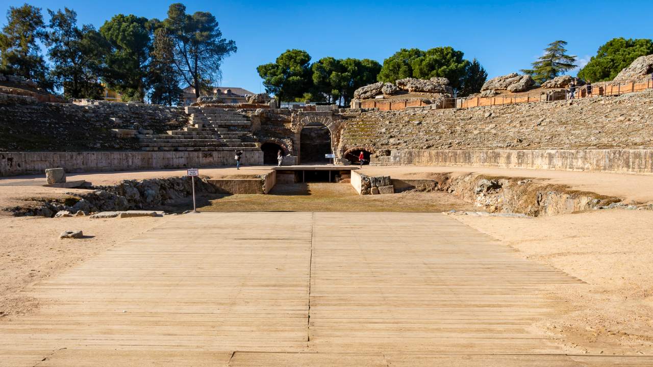 Then the Theater, between 16 and 15 B.C., in the capital of Augusta Emerita in the province of Lusitania. The original capacity was about six thousand spectators distributed according to their social status. In both buildings the entrance to the stands was through vomitoriums and you can not miss the tour of one of them at night while you get to your seat to watch a play of the International Festival of Classical Theatre of Merida.