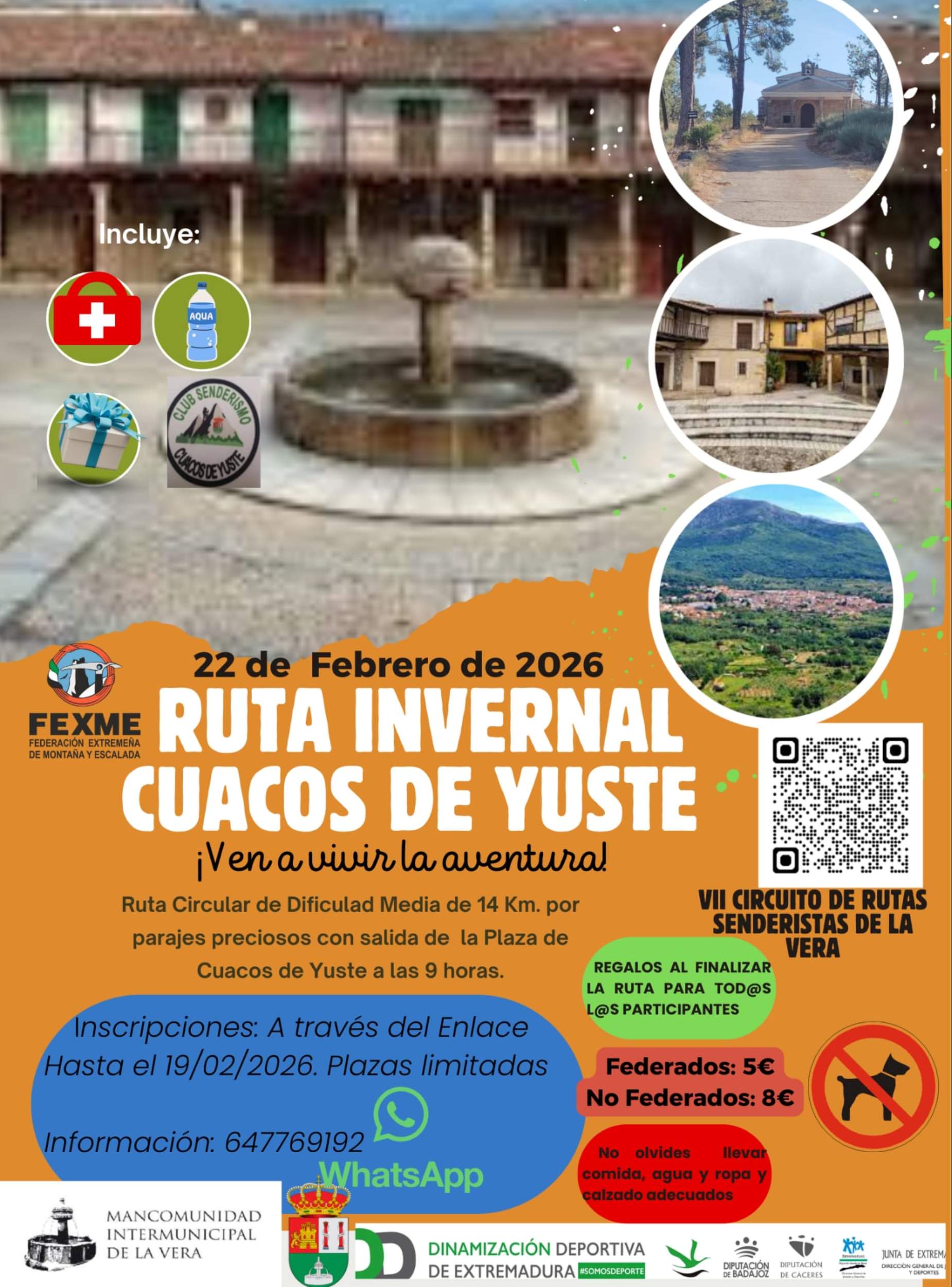 El próximo 22 de febrero de 2026, Cuacos de Yuste acoge una nueva edición de la Ruta Invernal, una experiencia senderista ideal para disfrutar del invierno en plena comarca de La Vera.