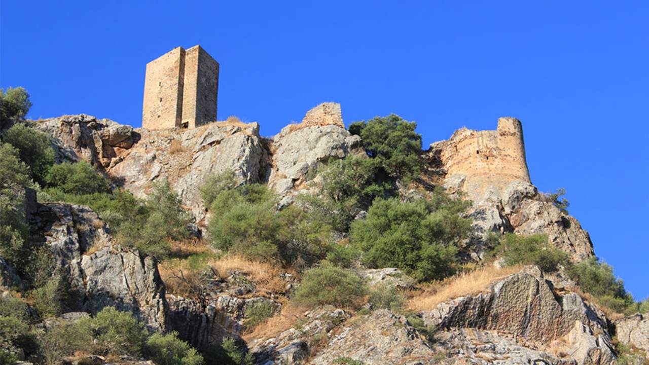 El castillo, situado en el cerro que le da nombre, es una fortaleza estratégica construida por los musulmanes en el siglo IX, en torno al año 850, aunque podría tener un origen anterior. Su relevancia se debía a su posición privilegiada para vigilar el paso de la Vía de la Plata y controlar los movimientos militares relacionados con Mérida, ciudad donde eran frecuentes las revueltas contra Córdoba durante el periodo andalusí.