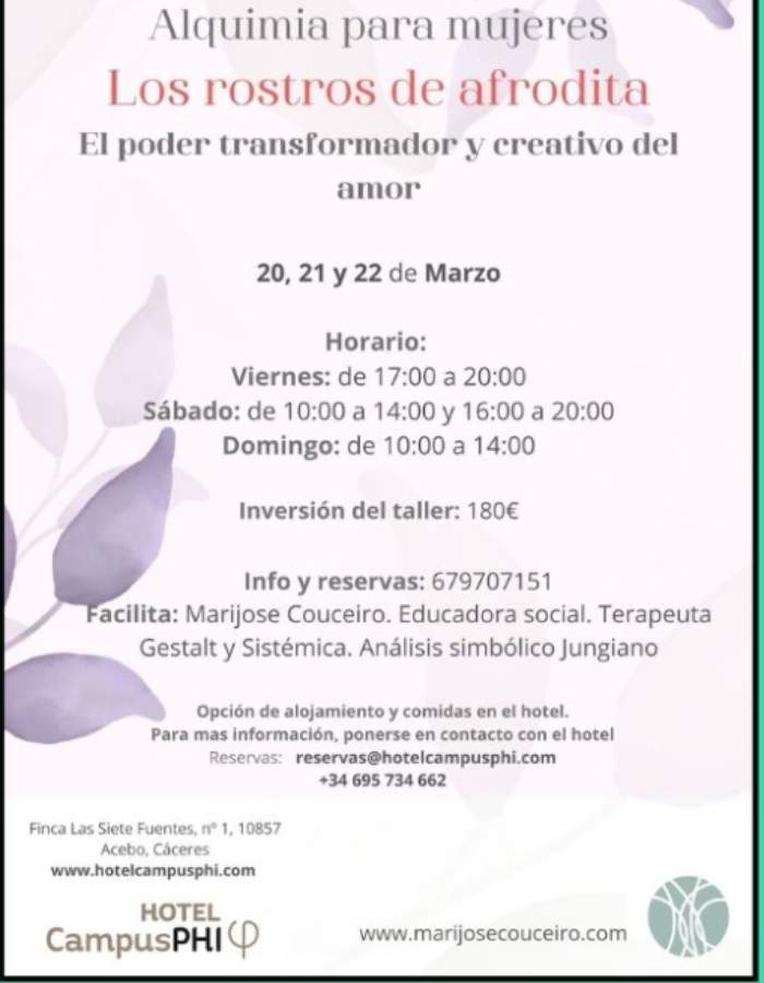 Alquimia para mujeres en Hotel Campus Phi- 180 €, para más información e inscrpciones: 679 707 151 (Marijose Couceiro Fuentes)