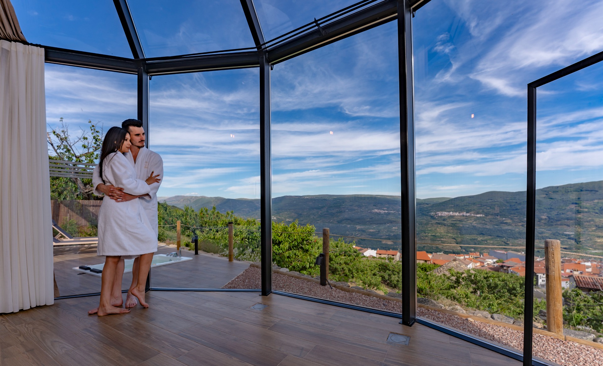 Ubicado en El Torno, conocido como Mirador del Valle, un lugar mágico desde donde podrás disfrutar de las mejores panorámicas del Valle del Jerte y de un cielo estrellado único.