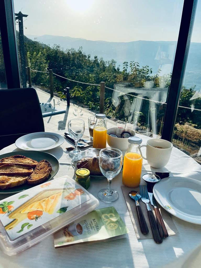 Y qué mejor manera de despertarte que con las magníficas vistas del Valle del Jerte mientras desayunas desde el Chozo.