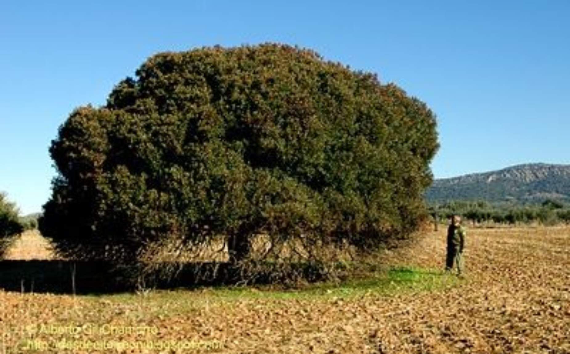 Se trata de un ejemplar excepcional de lentisco (nombre científico: Pistacia lentiscus), comúnmente llamado charneca en la zona.