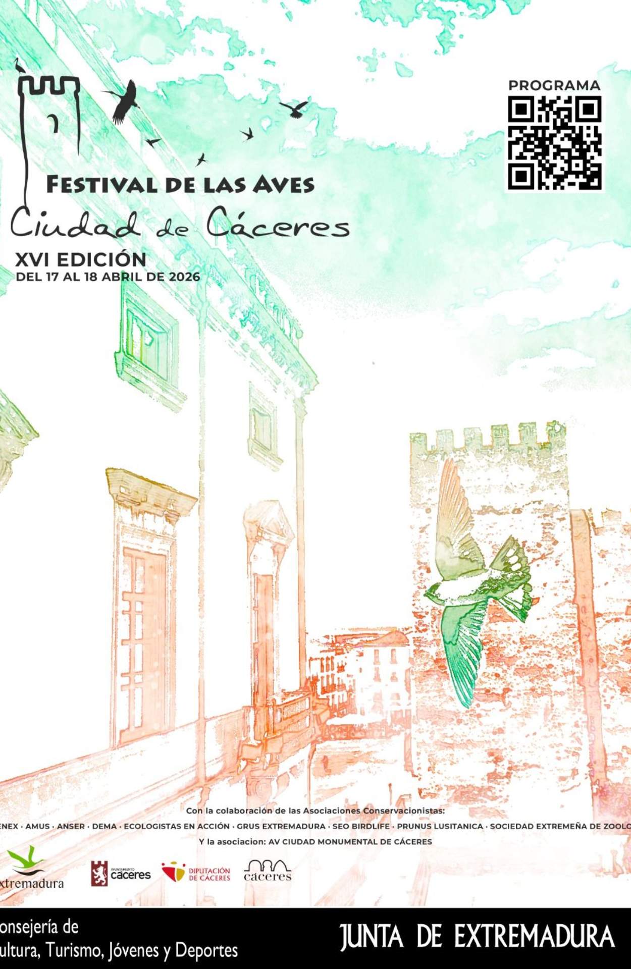 El Festival de las Aves Ciudad de Cáceres invita a descubrir una combinación única de naturaleza y patrimonio histórico. En Cáceres, numerosas especies conviven entre torres, murallas, iglesias y palacios, creando un escenario excepcional para la observación de aves en un entorno urbano.