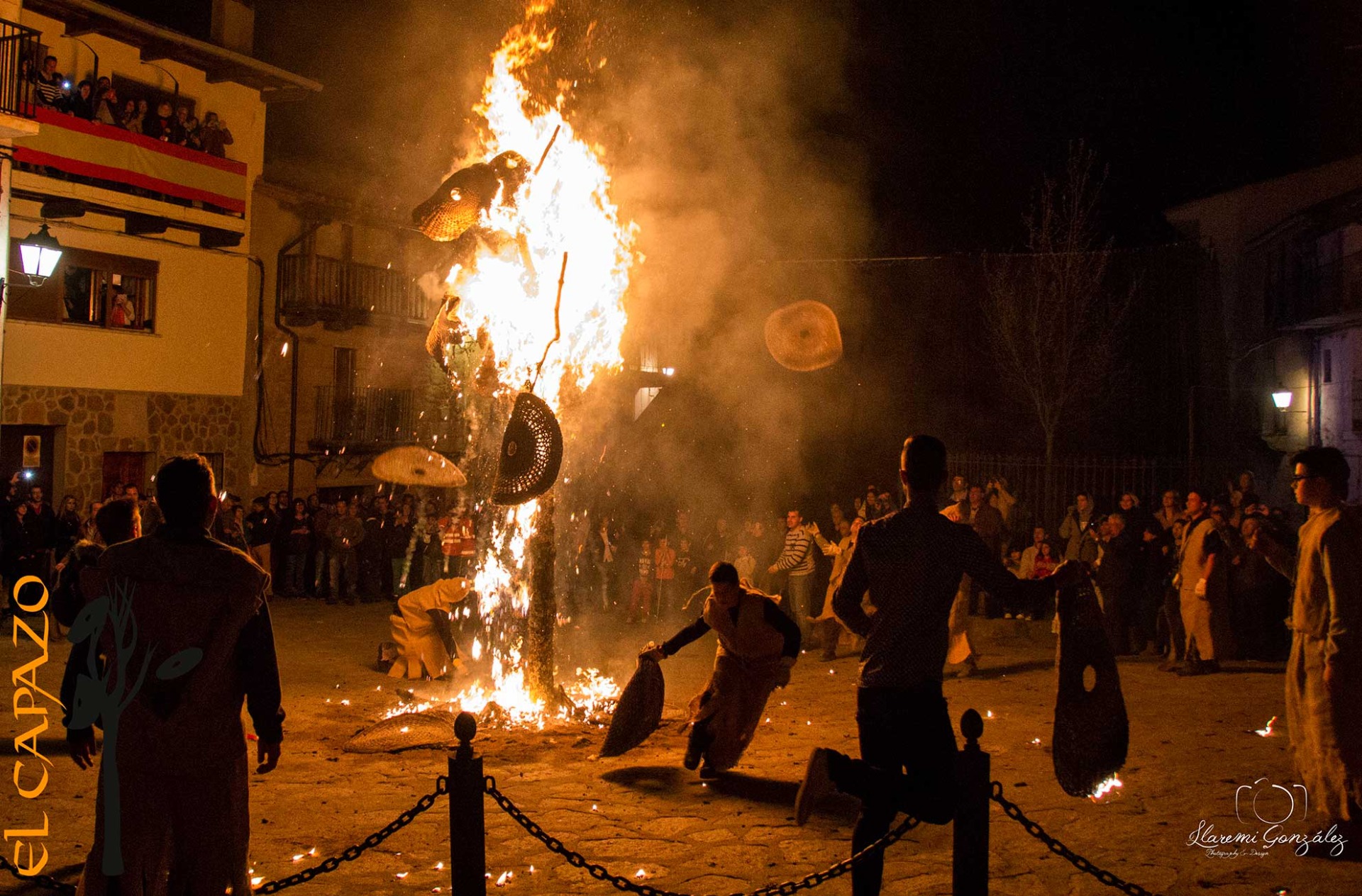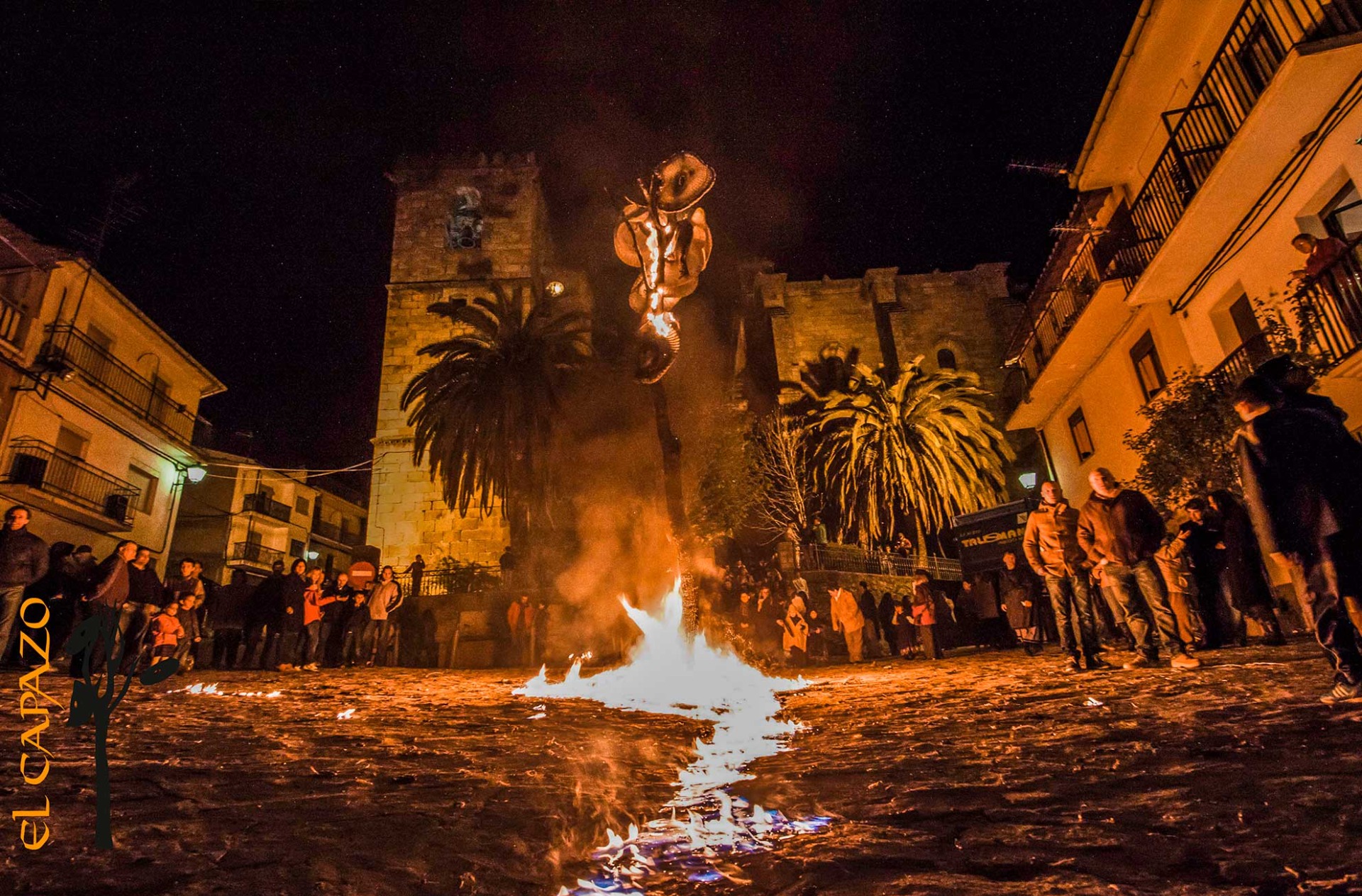 Concluida la misión es El Camuñas quien incita al resto del pueblo, hasta ahora sólo público, a lanzar también sus capacetas al árbol, que arderá ferozmente, iluminando la plaza hasta consumirse entre las llamas. El rito finaliza con el sopetón: pan tostado, empapado en aceite y zumo de naranja y cubierto de azúcar.