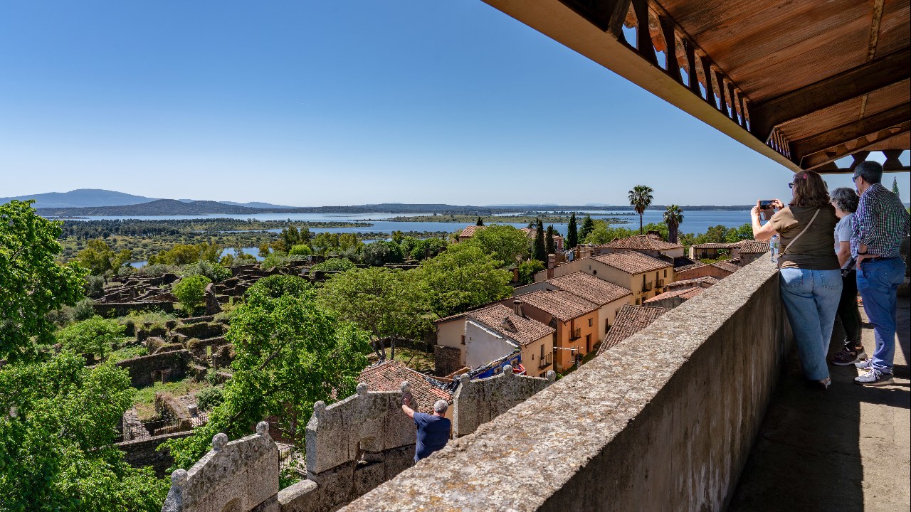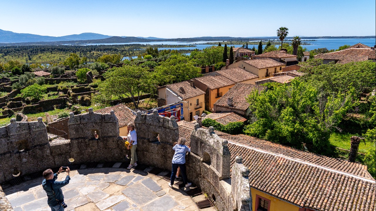 Se trata de un pueblo pequeño, semiderruido, rodeado en su totalidad por una muralla por la que se puede dar la vuelta casi completa y que nos ofrece unas vistas preciosas del pantano de Gabriel y Galán (que rodea la mayor parte a la villa). Pero para vistas, las que vas a disfrutar cuando subas a lo alto del castillo. El castillo vigila imponente la entrada de la muralla que da acceso al poblado. Es muy original y no demasiado elevado, por lo que es recomendable subir hasta lo parte más alta (quizas no para personas muy mayores, por sus empinadas escaleras de caracol) ya que hace las veces de mirador. El paisaje, con el agua del embalse rodeando la población, resulta realmente bonito.
