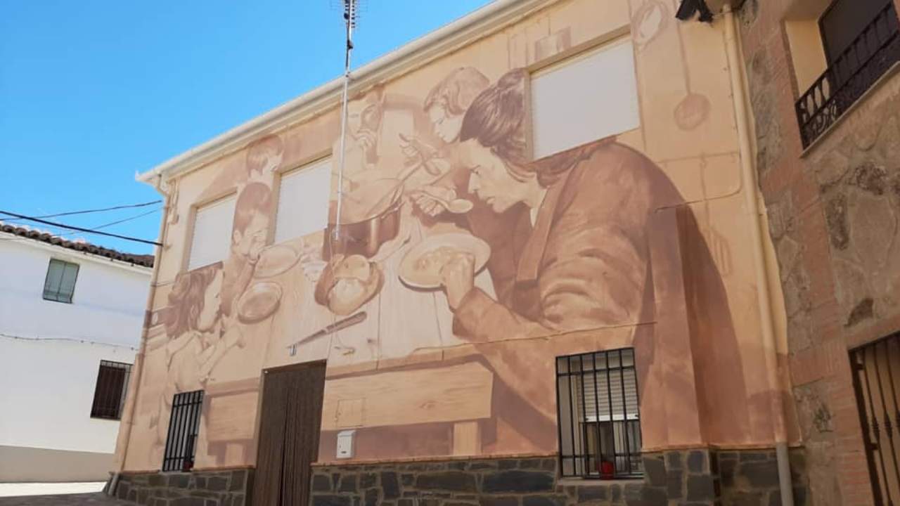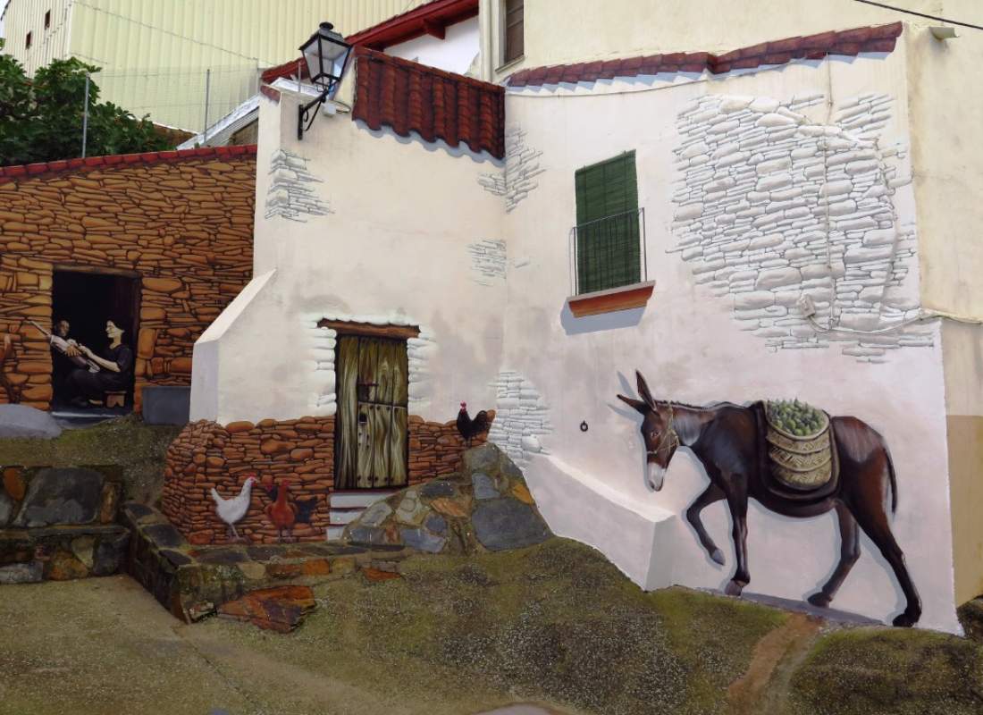 La Ruta de los Trampantojos es un itinerario artístico que invita a descubrir los distintos rincones de Romangordo, donde fachadas y muros se transforman en auténticas escenas llenas de vida gracias a sus pinturas.