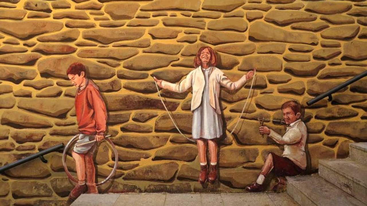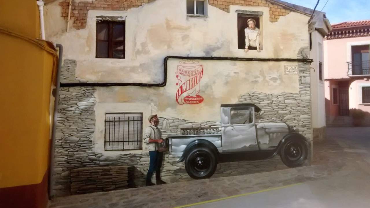 Más allá de la ilusión visual, los trampantojos muestran oficios y escenas de antaño —como mujeres lavando, juegos infantiles o animales de granja— que rememoran un tiempo pasado y ayudan a conservar las tradiciones locales.