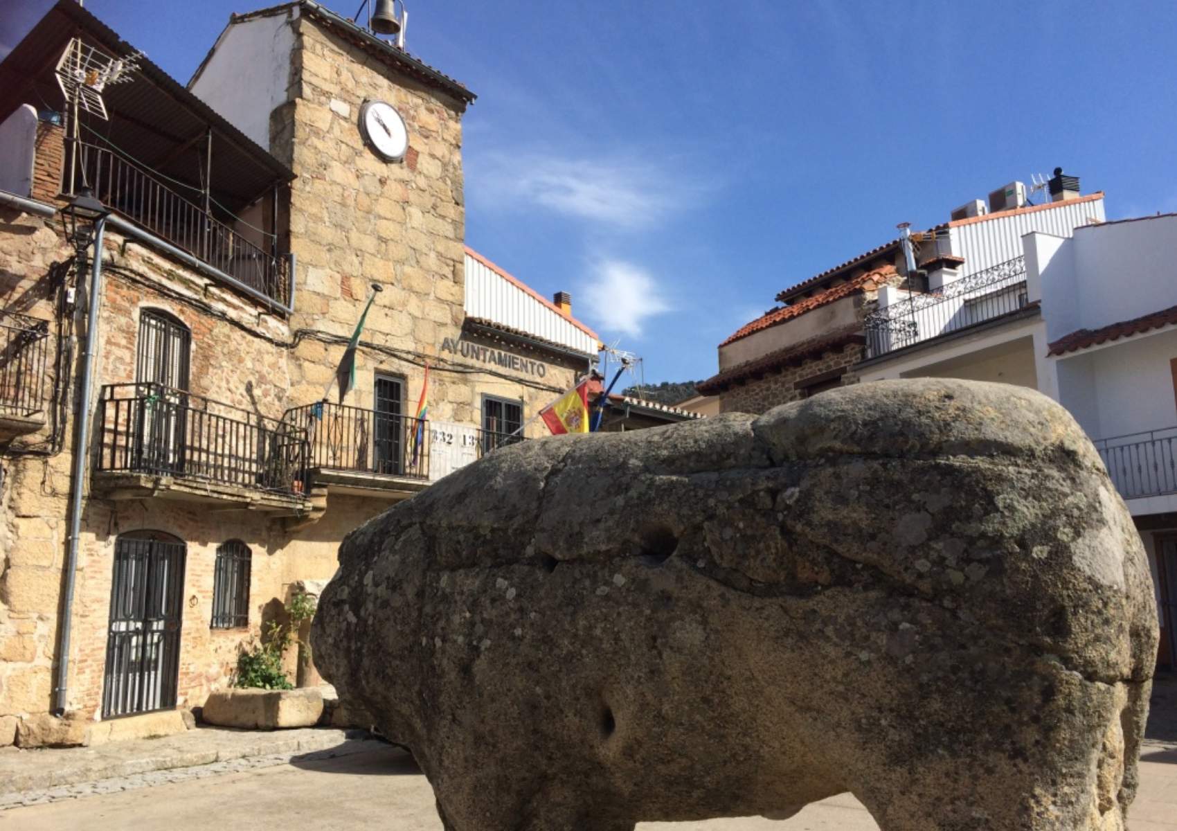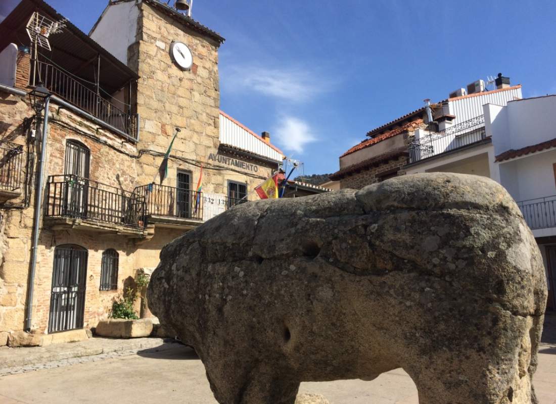 Pasear por sus calles empedradas es adentrarse en un entorno lleno de encanto, donde las casas de piedra y las fachadas tradicionales mantienen intacto el carácter serrano del lugar. Uno de los mayores símbolos del pueblo es el Toro Celta de Segura de Toro, una escultura prerromana tallada en granito que se encuentra en plena plaza y que conecta directamente con los antiguos vetones que habitaron esta zona hace más de dos mil años. Esta figura es única en Extremadura y representa el pasado más remoto del municipio.