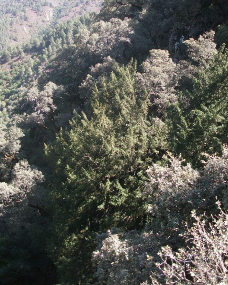 Entre los ejemplares destaca una encina de más de 15 metros de altura, con helechos sobre su tronco, y tejos de hasta 10 metros de altura. Aunque no son los más antiguos de Extremadura, su abundante regeneración hace de esta población la más saludable de la región, garantizando la supervivencia de la especie.