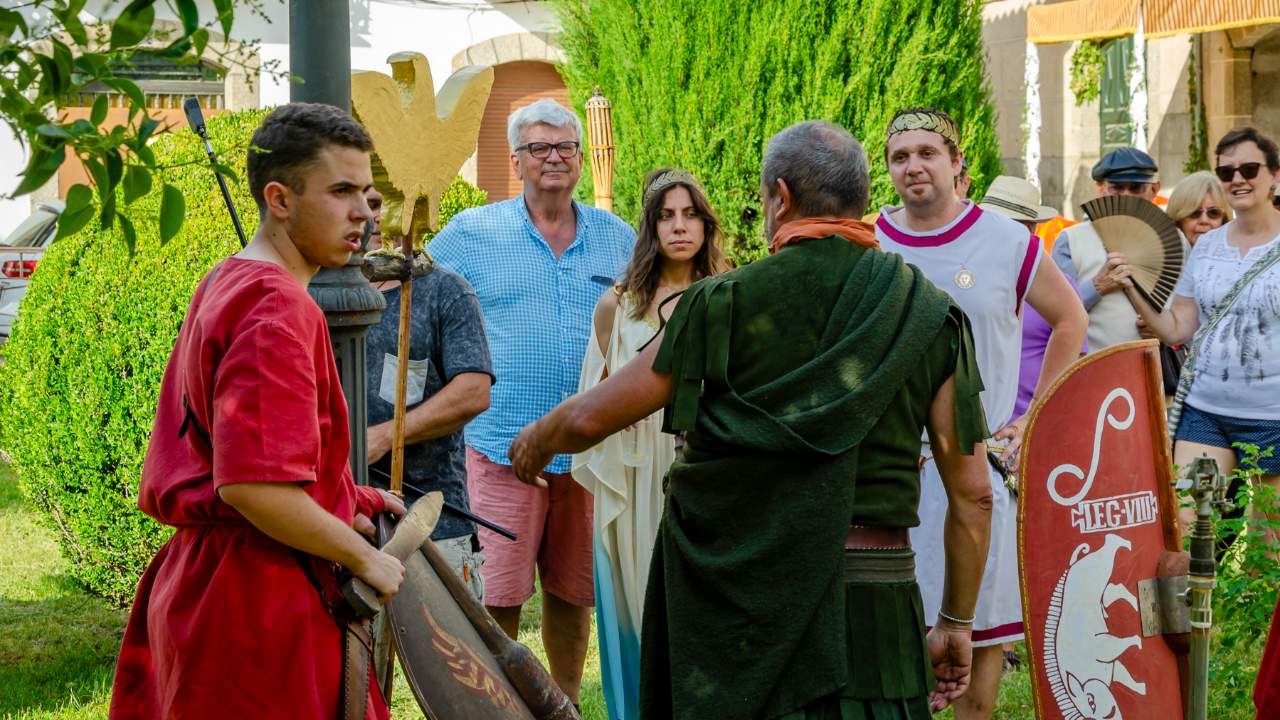 La población, ataviada con trajes de la época salen a la calle a saludar a las legiones romanas, los senadores, el emperador y también para disfrutar de luchas de gladiadores. Entre las actividades se incluyen pasacalles con las comitivas romanas, pantomimas, campamento romano, mercado romano Mercatum, visitas guiadas a las termas, talleres para los más pequeños, ruta de la tapa, observación astronómica?
